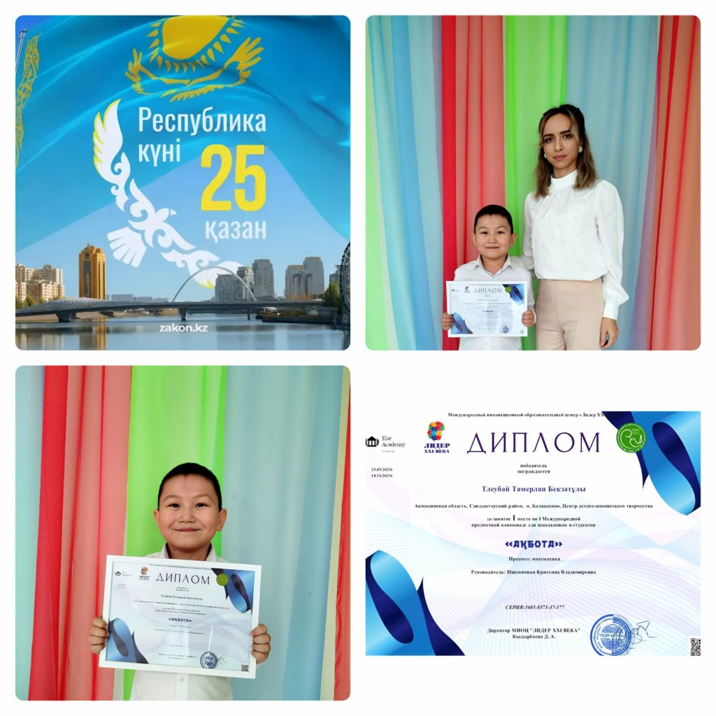 Ұзартылған күн тобының тәрбиеленушісі Тілеубай Тамерлан математикадан халықаралық олимпиадаға қатысып, құрметті бірінші орынға ие болды!