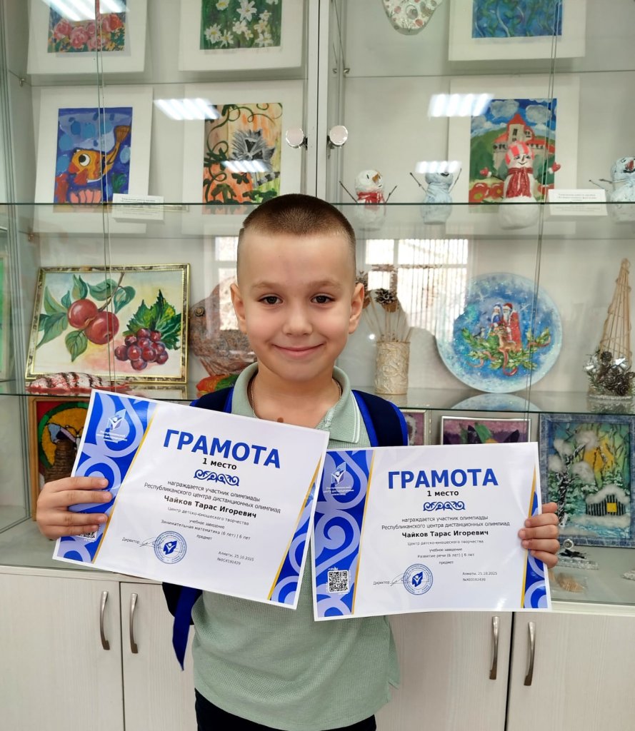 Сөйлеуді дамыту және ойын-сауық математикасы бойынша республикалық олимпиадада Тарас бірінші құрметті орынға ие болды!