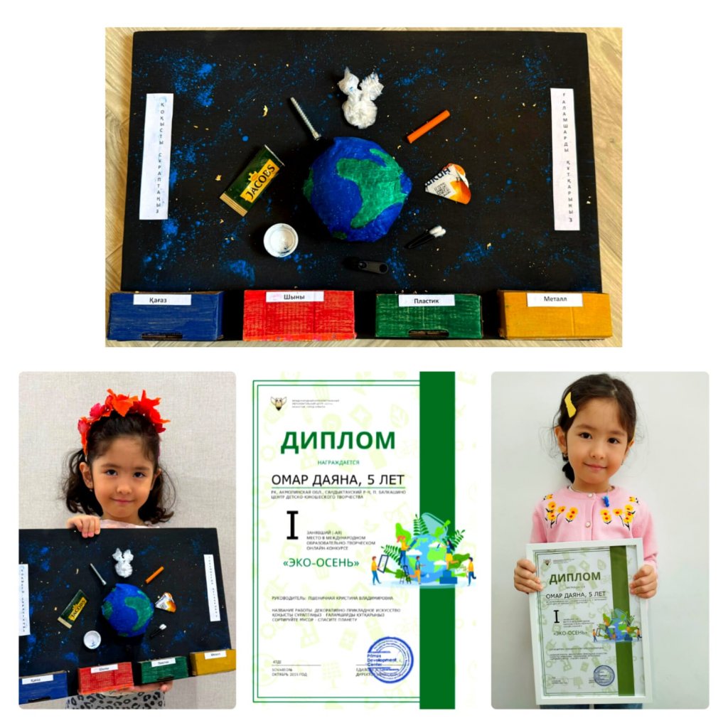 Біздің "почемучек академиясы" тобының талантты тәрбиеленушісі Омар Даяна "сәндік-қолданбалы өнер" номинациясы бойынша "ЭКО-күз" халықаралық білім беру-шығармашылық конкурсына қатысып, бірінші орынды иеленді!