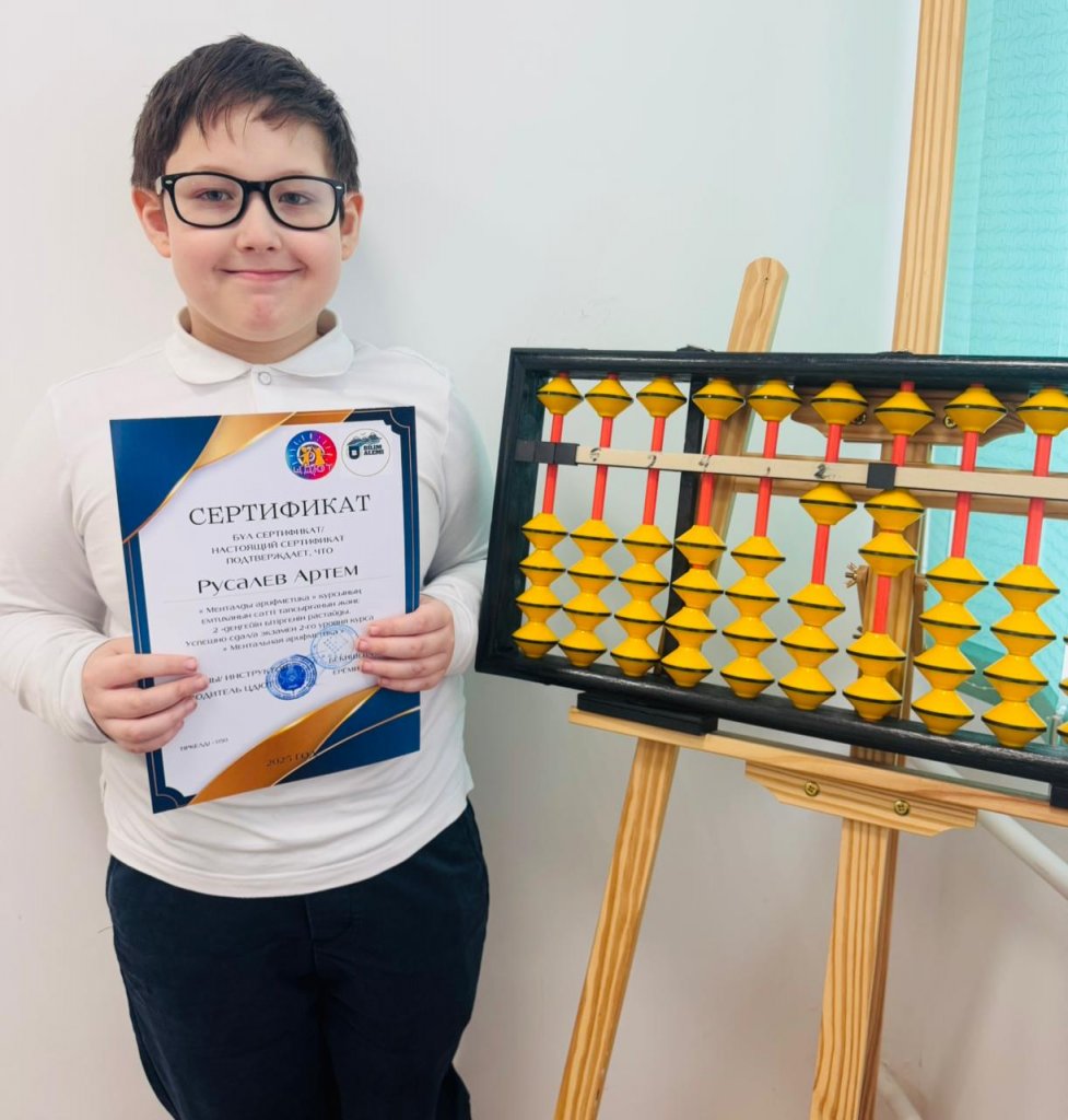 Русалёв Артём менталды арифметика курсының 2 деңгейін үздік аяқтап, өте жақсы нәтиже көрсетті! Біз сені шын жүректен құттықтаймыз!